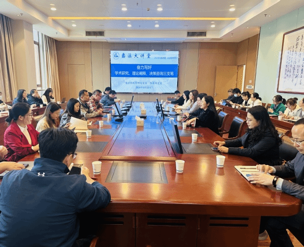 陈朋从“何谓三支笔”“近年来江苏省高校三支笔情况”“如何写好三支笔”三个方面做了讲解。他首先从学术研究、理论阐释、决策咨询三方面阐释了“三支笔”及其重要性,之后简要介绍了近年来省内高校写好“三支笔”取得的进展,最后重点讲解了如何“如何写好三支笔”。关于“如何写好三支笔”,陈朋认为在学术研究方面,要突出问题意识、瞄准学术前沿,强调了重在“选题”、优在“论证”、成在“细节”、贵在“坚持”;在理论阐释方面,要紧扣热点话题、注重逻辑自洽、精炼话语表达;在决策咨询方面,要紧贴党委政府决策部署、认真开展调研写好报告、努力畅通成果报送渠道等。