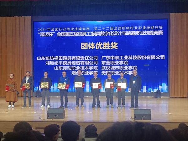 11月22日至25日,2024年全国行业职业技能竞赛——“豪迈杯”全国第五届模具工(模具数字化设计与制造)职业技能竞赛决赛在山东举行。来自全国各省市高校、企业的37支代表队参赛,我校代表队获得学生组一等奖。