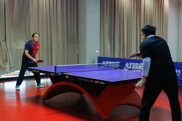 校党委书记龚方红宣布比赛开幕。本次比赛分两阶段进行,第一阶段根据抽签分成四个小组进行单循环赛,根据积分排名,小组前两名出线。第二阶段为淘汰赛,小组赛八强队伍捉对厮杀,经过三轮12场比赛决出1-8名。各代表队积极准备,教练们斗智斗勇、巧妙布阵,选手们精神饱满,时而轻盈跃起、扣杀凌厉,时而稳扎稳打、防守严密,拉球、搓球、正手弧圈、直板横打……大家以球会友,在攻防之间将比赛气氛推向一个个高潮,呈现了一场场精彩纷呈的对决。
