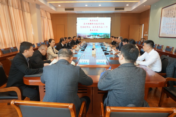 11月13日上午,苏州健雄职业技术学院党委副书记、校长林长永带队来校调研交流。我校党委副书记、校长周桂瑾,党校办、教务处、马克思主义学院、开源创新创业学院、物联网工程学院、继续教育与培训部相关负责人参加座谈。
