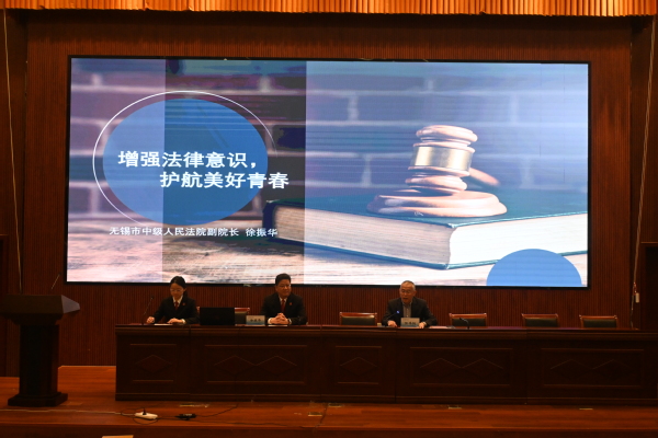 为进一步增强青年学生的法律意识,营造和谐的校园环境,10月29日,我校邀请无锡中级法院副院长徐振华法官,开展以“增强法律意识,护规美如青春”为主题的蠡溪大讲堂普法讲座。我校副校长强伟纲主持讲座,并为徐振华颁发了法治副校长聘书。