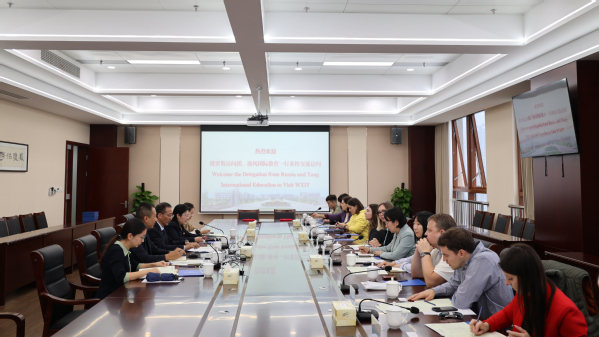 10月31日下午,俄罗斯战略倡议署、俄罗斯欧亚经济联盟议会大学、莫斯科当代艺术学院、俄罗斯联邦国民经济和国务学院、布里亚特国立农业学院以及唐风国际教育集团等17位代表来校交流访问。校领导龚方红、吴慧媛及国际交流合作处、爱尔兰学院等相关部门负责人参与接待。