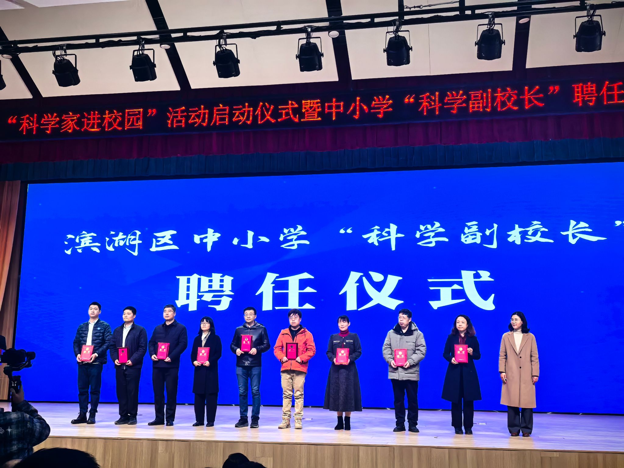 本次活动主题“智hui湖湾创xiang未来”,旨在大力弘扬科学精神和科学家精神,全面提升中小学生科学素养,进一步推动滨湖区中小学科学教育高质量发展。此次受聘的科学副校长将全面参与学校科学教育规划,推动科学课程创新与教师能力提升,同时引入优质科学教育资源,普及科学知识,传播科学思想,分享科技前沿动态,激发学生创新思维,营造科学文化氛围。