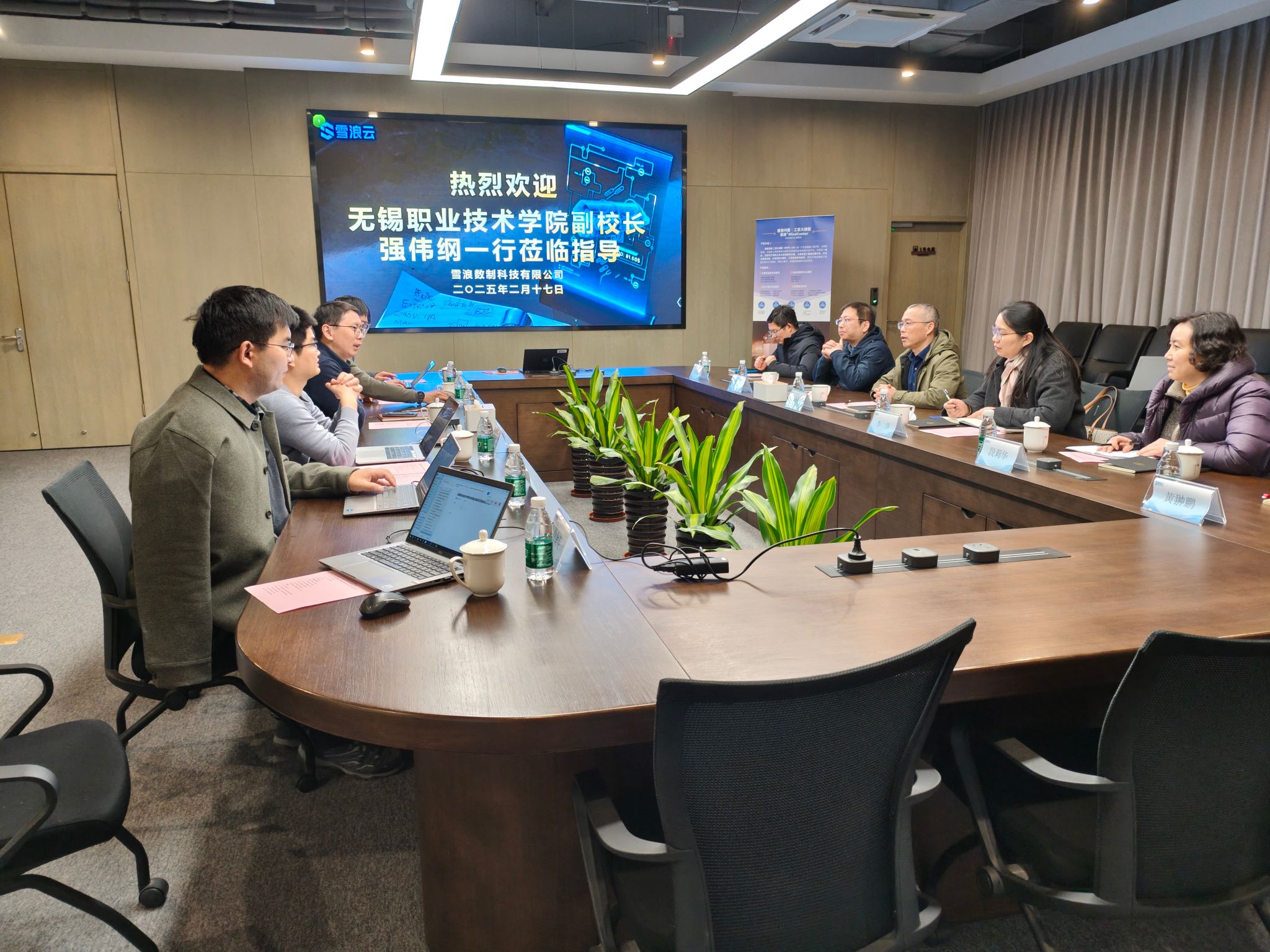 2月17日,副校长强伟纲带领物联网工程学院、信息化与数据服务中心相关负责人及骨干教师团队,前往无锡雪浪数制科技有限公司实地走访调研。