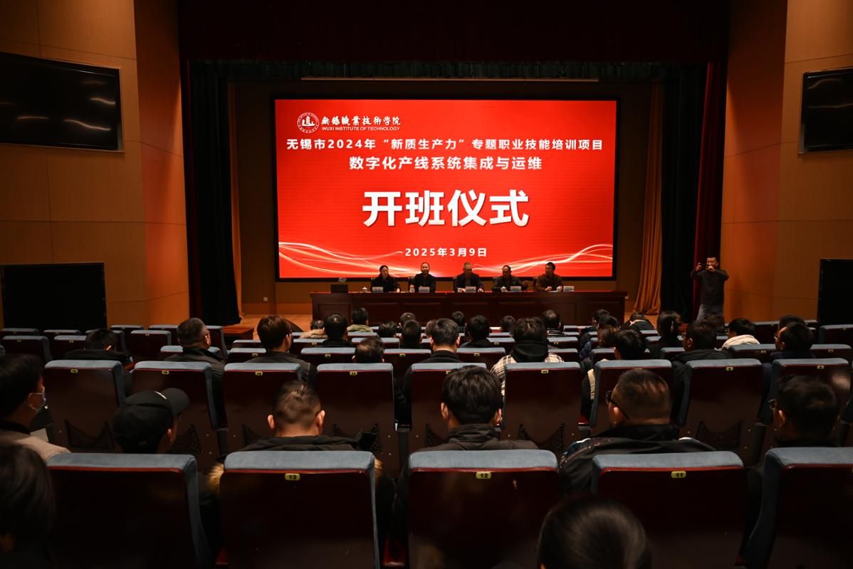 3月9日,无锡市2024年“新质生产力”专题职业技能培训——数字化产线系统集成与运维在我校厚德楼一楼报告厅开班,无锡市多家企业50余名技术员工参加培训。无锡市高技能人才公共实训服务中心主任蒋林华、我校校长周桂瑾及继续教育与培训部负责人参加开班仪式。