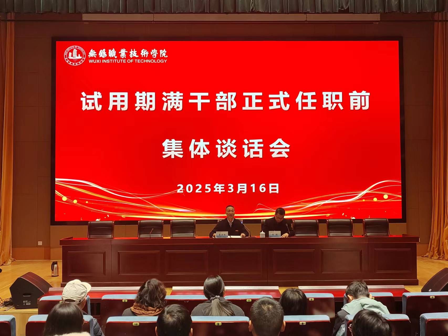 为进一步加强干部队伍建设,强化干部的责任意识和廉洁自律意识,确保试用期满干部在正式任职后能够更好地履职尽责、担当作为,我校于3月16日在厚德楼一楼报告厅举行试用期满干部正式任职前集体谈话。校党委书记龚方红、纪委书记李衔出席会议并讲话,试用期满的39名干部参加谈话。