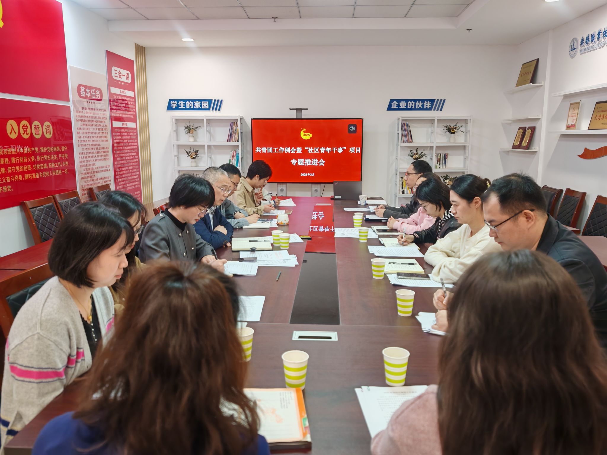 全体与会人员认真学习了《2025年两会工作报告》和习近平总书记在参加江苏代表团审议时的重要讲话精神。随后,团委书记郑月圆传达了共青团江苏省第十六届委员会第五次全体会议精神,并重点解读了团省委关于“社区青年干事”项目试点方案,全体与会人员围绕项目推进的具体举措进行了深入研讨。