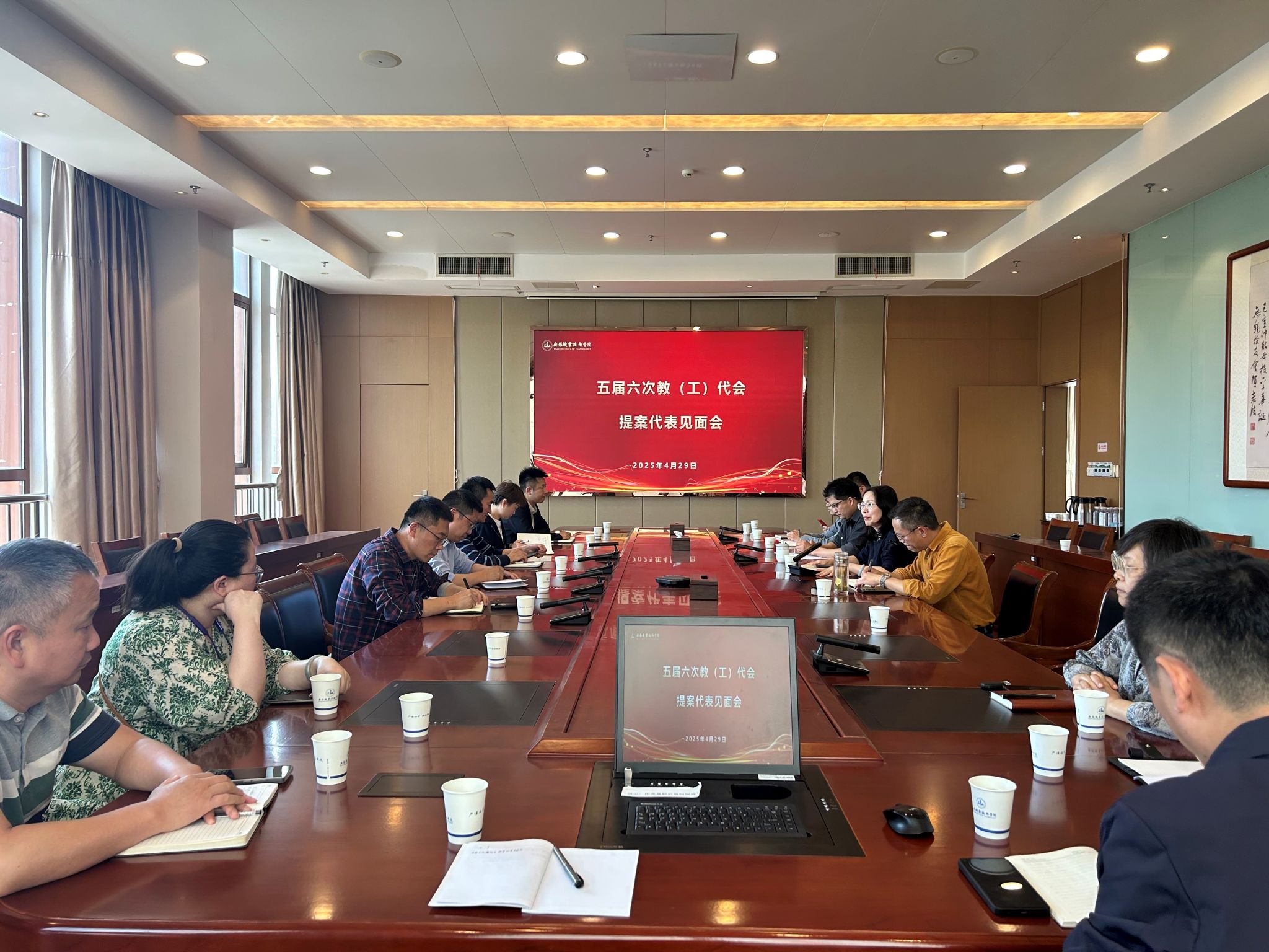 4月29日下午,校工会在厚德楼F201会议室组织召开五届六次教(工)代会提案代表见面会,校党委副书记、工会主席杨雪琴,工会常务副主席苗勇、提案工作委员会成员及提案办理相关部门负责人参加会议。