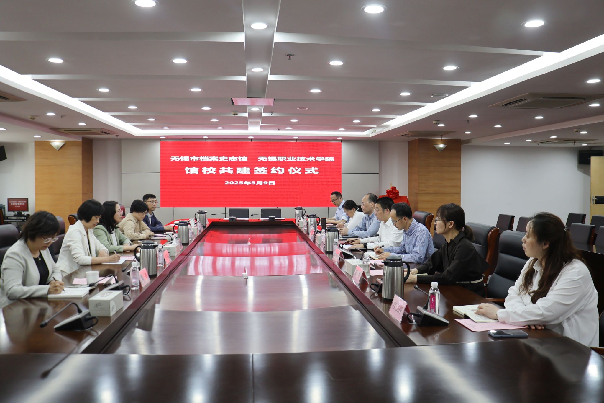 无锡市档案史志馆党组书记、馆长接玉松及副馆长孙海东、吴刚、郑姣,机关党委、开发利用部、办公室等部门负责人接待了我校一行。