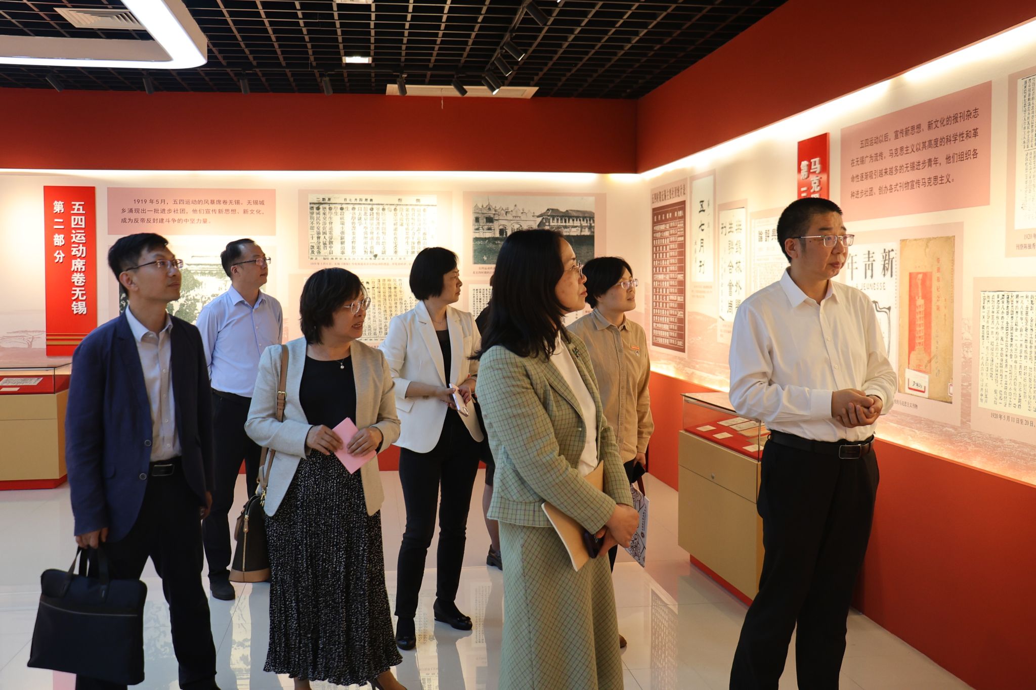 当天,接玉松还陪同我校一行参观了“扬帆起航——中共无锡第一个党组织成立100周年图片展”,并详细介绍了无锡解放历史,用丰富的史料和真实的故事,带领大家重回76年前的无锡“解放时刻”。
