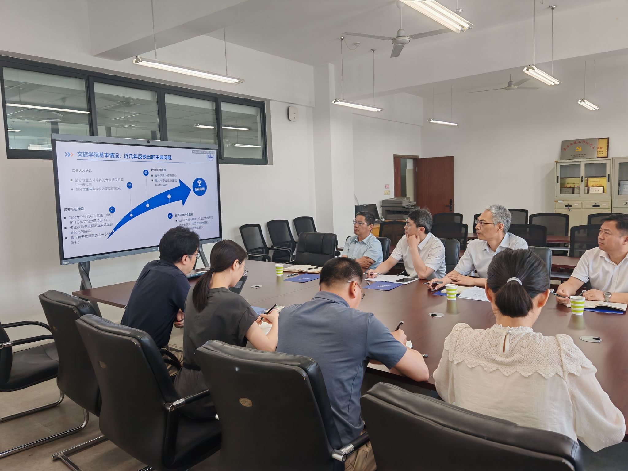 5月22日上午,校长周桂瑾、副校长奚茂龙率队到文旅学院开展“专业提质升级专题调研”,教务处、科产处、招就处、双高办、发规处等相关负责人出席。文旅学院领导班子全体参会,院长冯臻围绕学院专业建设现状、未来发展规划及当前面临的挑战作了专题汇报。