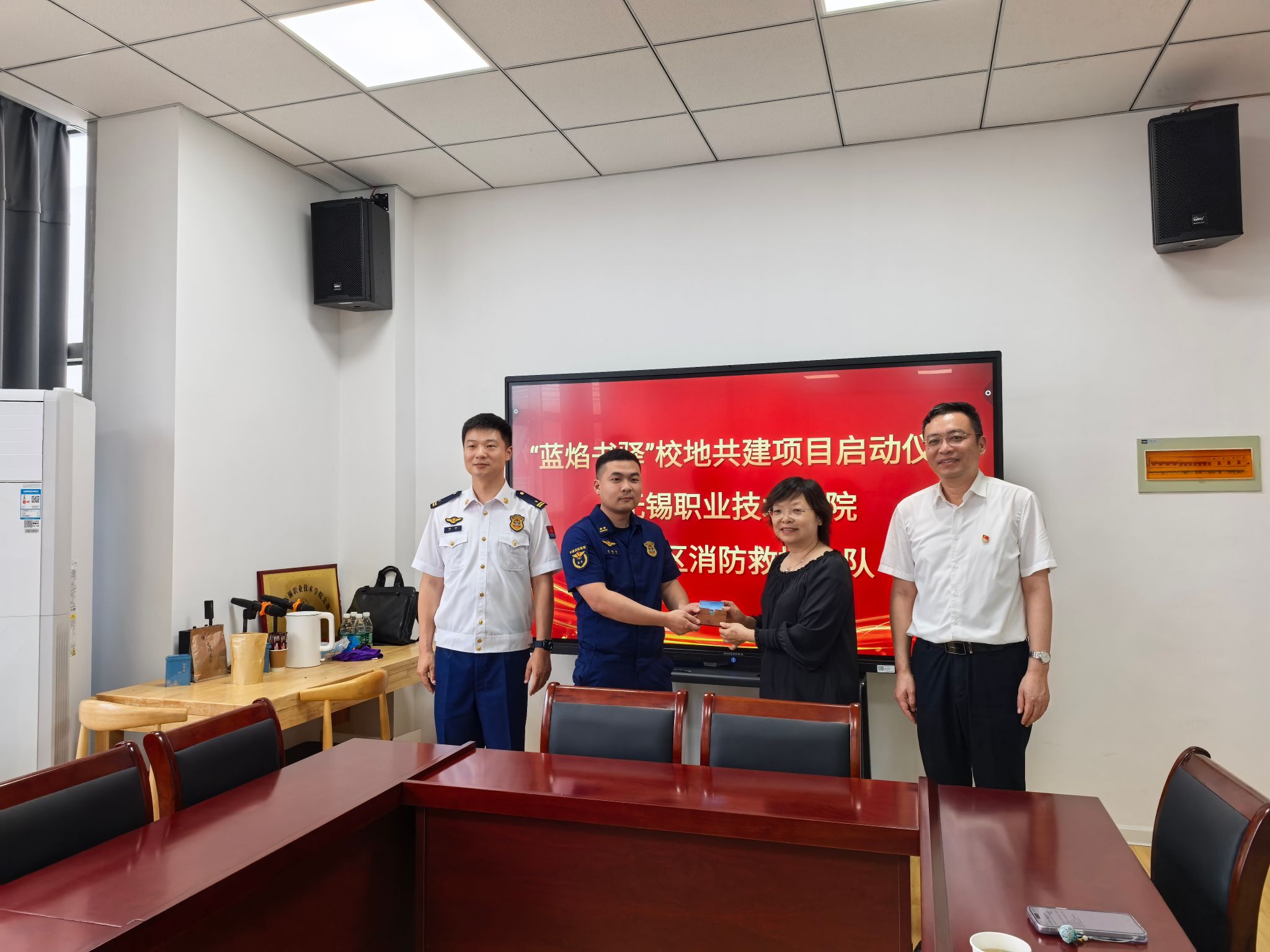 为深化校地应急联动机制,提升校园消防安全治理水平,5月23日,我校与滨湖区消防救援大队联合开展"蓝焰书驿"校地共建项目启动仪式暨消防应急疏散演练。副校长储开峰出席活动,保卫处、图书馆全体教职员工及相关学生参与。