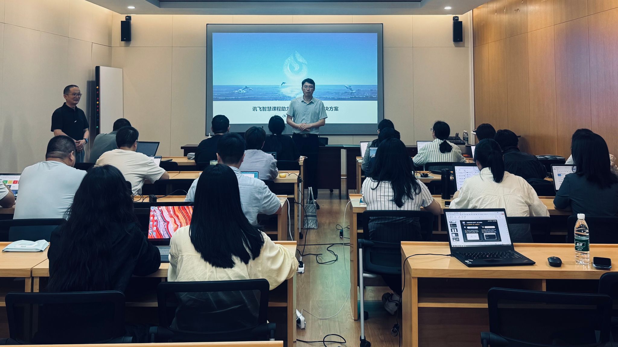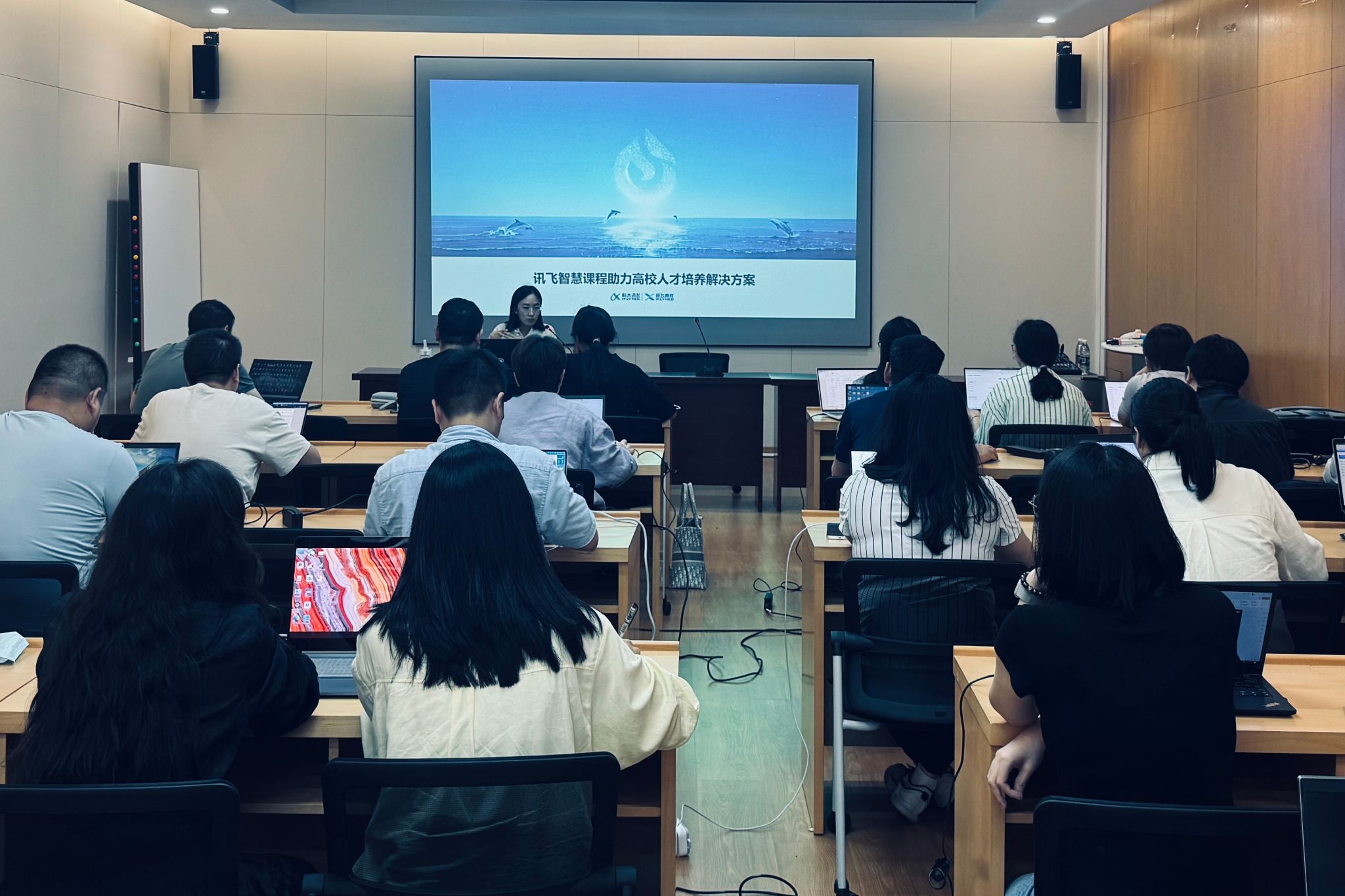 为推动人工智能赋能课程、教材、教师、实践等教育教学核心要素改革,加快构建数据驱动、人机结合、跨界开放的人工智能赋能高等教育人才培养新生态,6月13日,学校联合科大讯飞举办“教师数字素养提升工坊”,吸引了来自全校的20余名骨干教师参与,通过理论与实践结合的方式,探索人工智能技术与高等教育教学场景的深度融合。