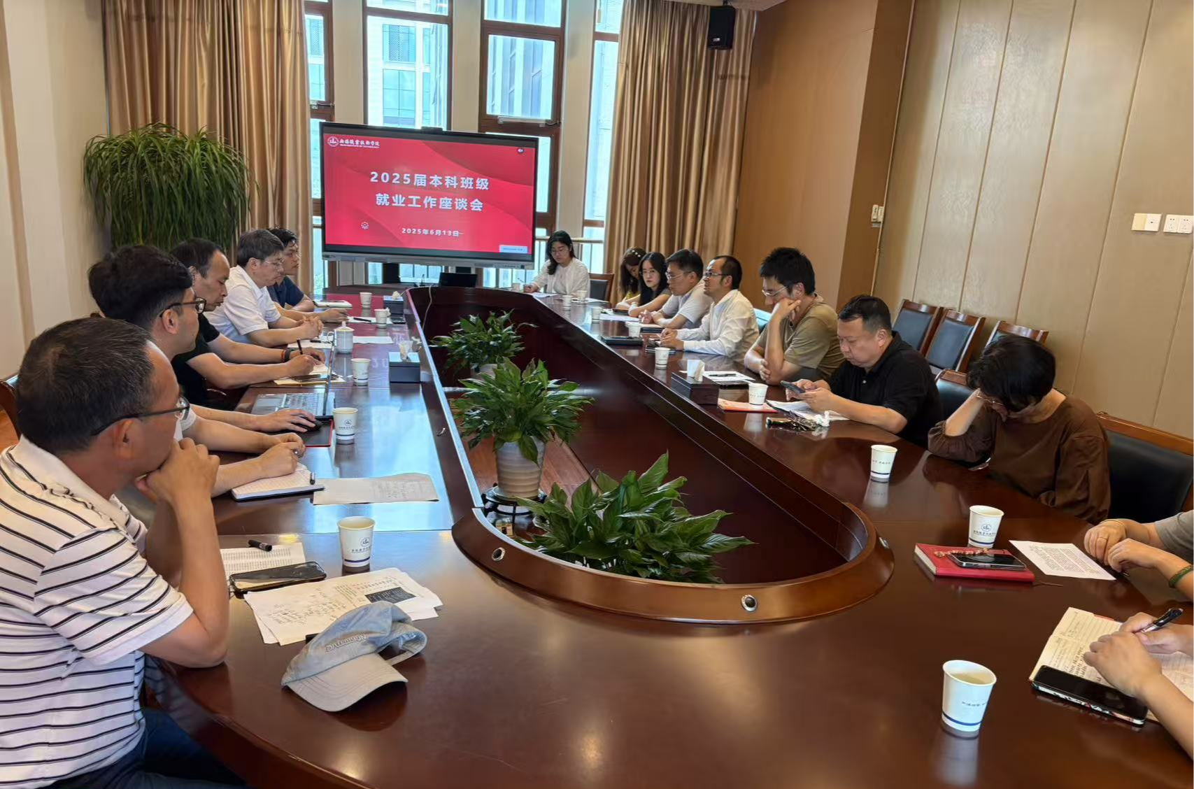 为扎实推进 2025 届本科毕业生就业工作,6月13日中午,我校在厚德楼204会议室召开2025届本科毕业生就业工作专题调研座谈会。副校长奚茂龙出席会议,相关学院分管领导、辅导员、全体本科班级班主任及招生就业处工作人员参会。