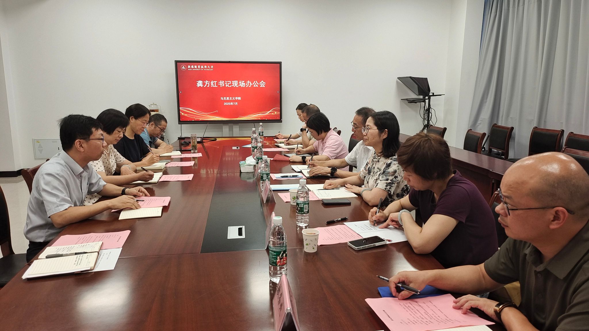 7月7日,校党委书记龚方红、党委副书记杨雪琴来到崇德楼1202会议室,召开马克思主义学院现场办公会,党办校办、党委宣传部、人力资源处、教务处、学工部等相关职能部门负责人,马克思主义学院班子成员及部分教师代表参加会议。