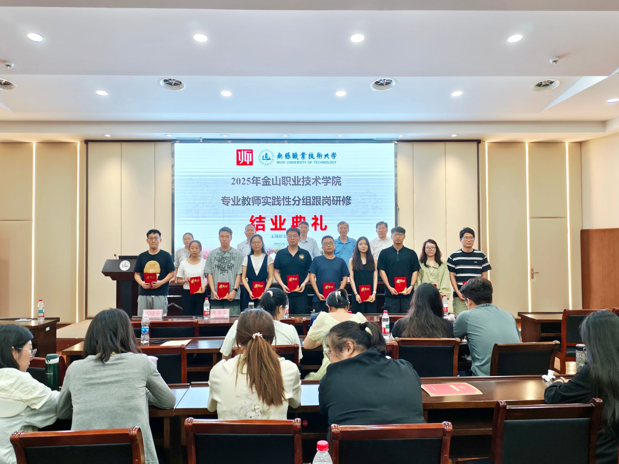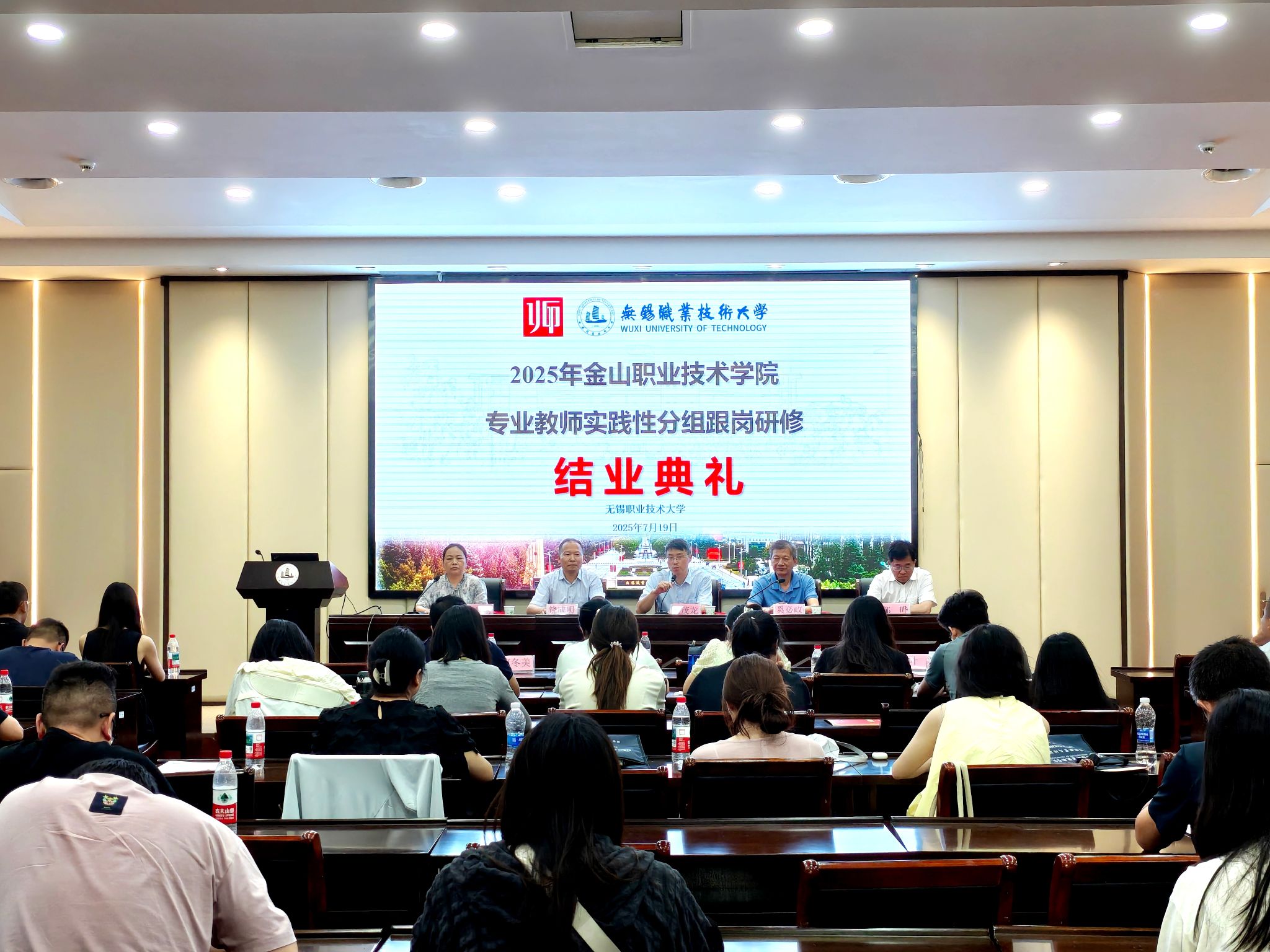 7月19日上午,2025年金山职业技术学院专业教师实践性分组跟岗研修培训班结业仪式在我校国际交流中心第二报告厅举行,金山职业技术学院副校长奚必政、我校副校长奚茂龙、继续教育与培训部主任饶成明、汽车与交通工程学院党政领导参加结业典礼,典礼由汽车学院党总支书记张美娟主持。