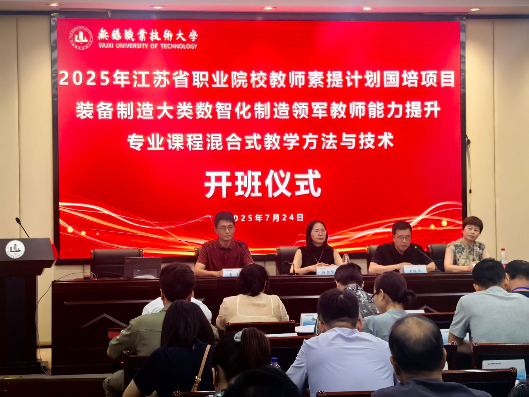 7月24日上午,由机械工程学院承办的2025年江苏省职业院校教师素质提升计划“装备制造大类数智化制造领军教师能力提升”、“专业课程混合式教学方法与技术”开班仪式在我校国际交流中心二楼报告厅举行。校党委副书记杨雪琴、机械学院党总支书记王振华、继续教育与培训部副主任曹冬美等领导出席开班仪式,机械学院副院长曹澍主持。