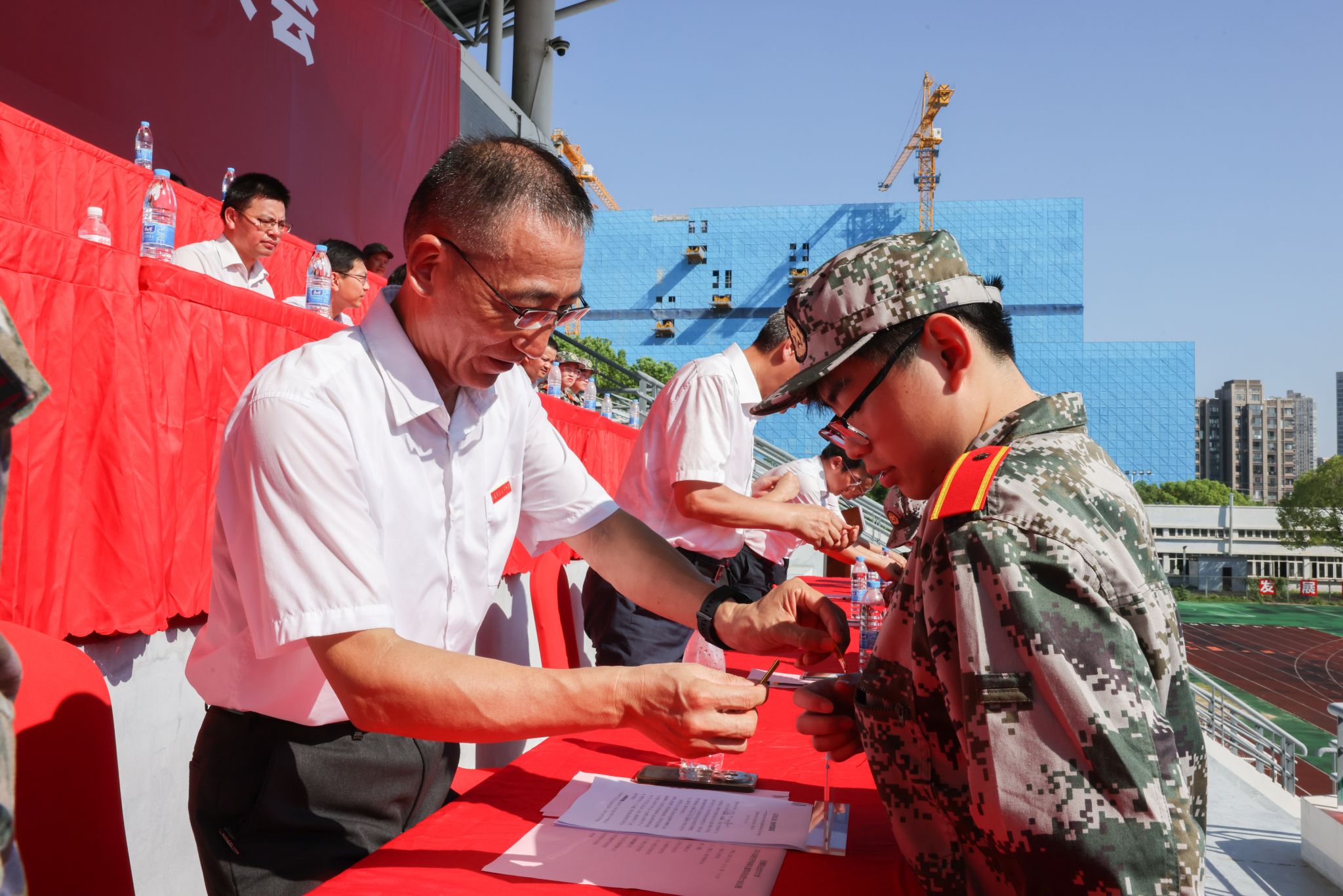 大会在激昂的校歌声中圆满落幕。2025级新生随即投入为期两周的军事训练,开启大学生活的第一课。