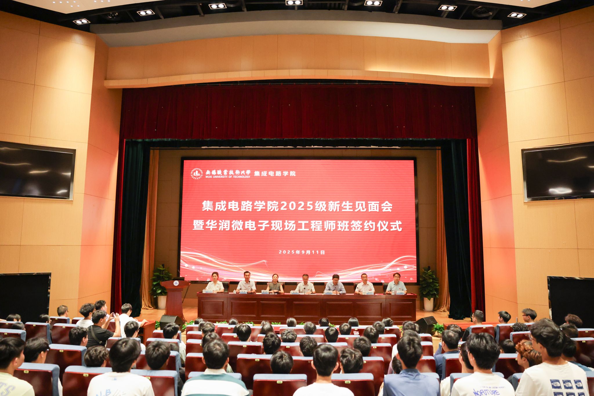 9月11日上午,集成电路学院华润微电子现场工程师班签约仪式暨2025级新生见面会在学校厚德楼报告厅举行。华润微电子有限公司制造中心党委委员、人力资源高级总监高鹏飞,招聘主管虞向华等企业代表,校党委书记龚方红,集成电路学院党政负责人及2025级微电子专业全体新生参加了活动。