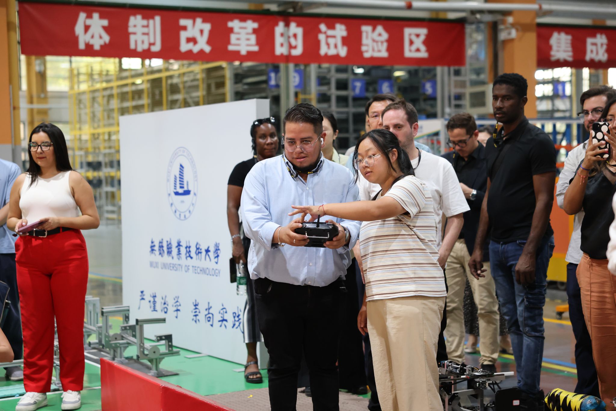 代表团一行先后参观了我校设计与艺术学院、智能制造工程中心及汽车与交通工程学院。我校教师向嘉宾详细介绍了绎江南文化传承创新基地、彩色泥塑作品《两个江南 血脉相连》、智能仓储物流测试验证平台、机器人竞赛与创新中心、虚拟仿真实验室、以及比亚迪汽车产业学院等一系列教学与科研成果,向代表团呈现了非遗文化与智能制造的创新融合。