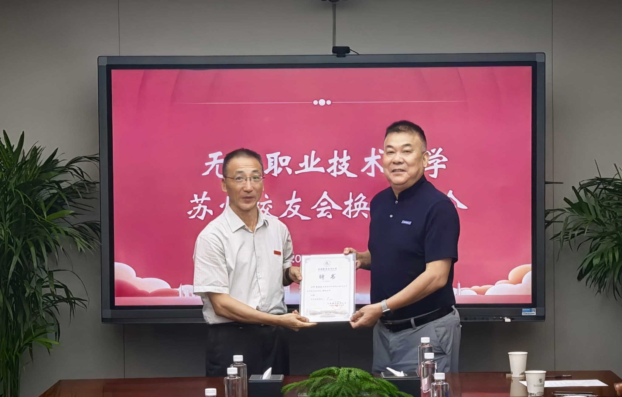 新任会长蔡连生在发言中表达了对母校深切的感恩之情,特别赞扬了学校在装备制造领域的人才培养成果。他结合个人“三个二十五年”的奋斗经历,分享了江苏天吴集团如何成长为电梯轨道领域的全球领军企业,以及其在吴江地区教育投资方面取得的显著成就。蔡连生表示,未来将积极推进与母校在技术研发、项目共建和高层次人才培养等方面的深度合作。