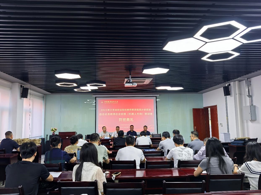 9月16日上午,2025年江苏省中职国培“自动化类教师企业实践—机器人方向”在我校敏行楼202会议室开班。党委书记龚方红及继续教育与培训部、控制工程学院相关负责人,江苏汇博机器人技术股份有限公司华东大区总经理吴坚等参加开班仪式。