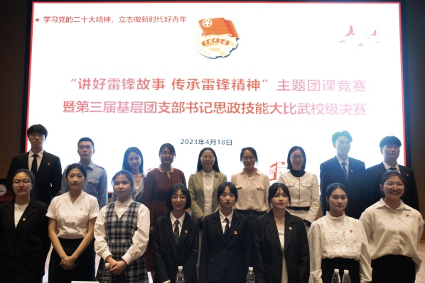 为深入宣传贯彻党的二十大精神,进一步聚焦思想引领主责主业,提高团干部思政技能和业务水平,团结引领全校各级团组织和广大青年积极响应党的号召,坚定信念跟党走,结合今年是毛泽东等老一辈革命家为雷锋同志题词60周年这一重要契机,4月18日下午,校团委在厚德楼一楼报告厅举办“讲好雷锋故事 传承雷锋精神”主题团课竞赛暨第三届基层团支部书记思政技能大比武校级决赛。校党委副书记杨雪琴、党委宣传部、马克思主义学院、团委相关负责人、第二届校赛特等奖获得者任慈同学担任评委。