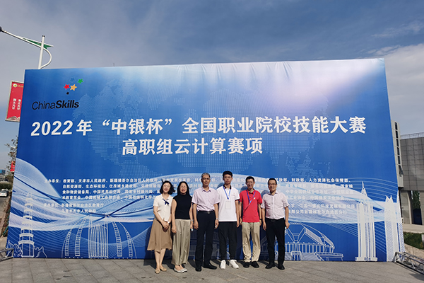 我校参赛队由物联网技术学院云计算专业学生何明康、指导老师高琪琪组成,校党委副书记周桂瑾、副校长杨雪琴率领教务处及物联网技术学院相关人员随行参加竞赛活动。竞赛日程分3天3场,每天7小时,共计21 小时。最终我校参赛队沉着冷静、灵活果断,克服重重困难,三天累计获得81.6分,以总分第1名的好成绩,荣获大赛一等奖。