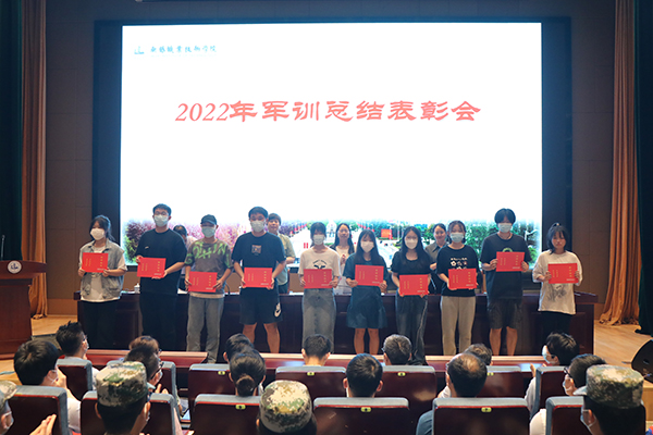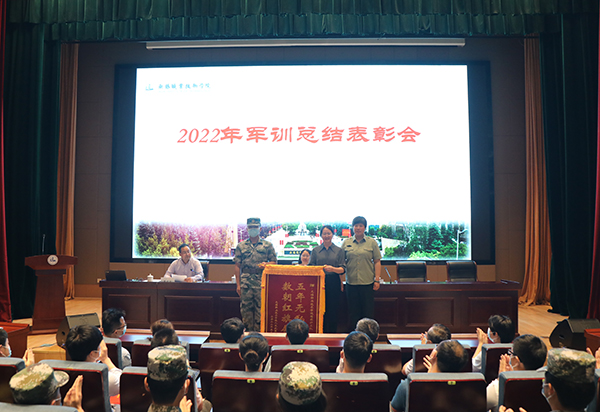 郑月圆宣读了《关于表彰2022年军训先进集体的决定》,主席台就坐领导为先进集体颁奖。国旗护卫队队长、控制技术学院工业自动化22032班黄逸俊同学总结汇报了此次军训的经验;旅游管理62132班彭佳宽同学向大家分享了军训期间的心得感悟。