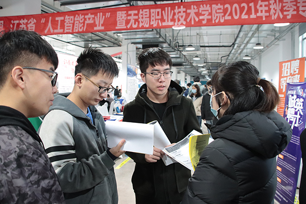 11月30日,为深入践行“两在两同”建新功行动,鼓励毕业生到重大工程、重大项目、重要领域就业,促进毕业生更高质量更充分就业,我校与无锡市梁溪区人社局、滨湖区人社局、智联招聘无锡分公司在产教融合大楼智能制造工程中心联合举办“两在两同促就业”招聘周江苏省人工智能产业暨星空app官网2022届毕业生秋季综合招聘会。