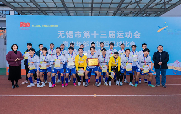 11月9日至15日,由无锡市教育局、无锡市体育局举办的市第十三届运动会青少年高校组足球比赛在锡举行。我校学生男子足球队在领队吴斌、主教练李博、助理教练谢友成的带领下,克服困难、努力拼搏,勇夺季军,创参赛以来最好成绩。