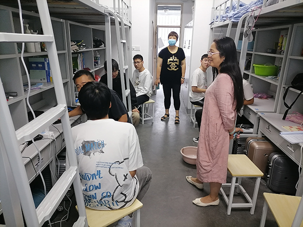 10月12日下午,杨雪琴副校长带领学工部、后勤处有关同志,共同走访新老生宿舍,热烈欢迎2021级新生来校学习生活。