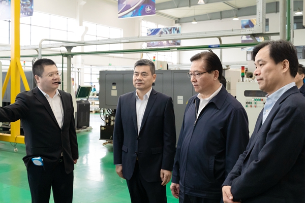 在智能制造工程中心,学校党委书记朱爱胜汇报了学校的历史沿革、办学特色、发展成果和未来愿景等情况。黄钦参观了我校智能制造生产线、立体仓库、五轴联动加工实验室。他高度肯定了我校近年来深耕智能制造、深化产教融合、提升人才培养水平所采取的措施和取得的成绩,并希望进一步做好二期工程,将其打造成为无锡地区智能制造工匠的摇篮。