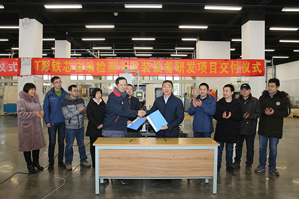 另一个是为无锡捷进精机有限公司研发的T型铁芯自动检测与包装设备。无锡捷进精机有限公司是一家精密冲压件制造的企业,主要生产汽车点火线圈铁芯、马达电机定转子铁芯。该研发项目用于对T型铁芯的排序、送料、检测、分检、搬运、包装等工序,设备基本达到一小时检测三至四箱、每箱五盘、每盘六排、每排二十四个T型铁型检测与包装。设备的应用为企业减少用工,实现了提质增效。