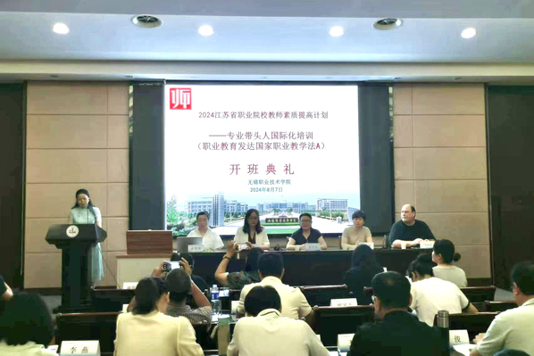 8月7日上午,由我校财经学院承办的2024年江苏省高职院校教师国家级培训项目——职业教育发达国家职业教学法培训班在国际交流中心二楼报告厅举行开班仪式。副校长吴慧媛、继续教育与培训部副主任曹冬美、德籍职业教育培训专家 Matthias Kreuzer、财经学院院长赵爽及来自省内30余所高职校的40名学员参加了开班仪式。