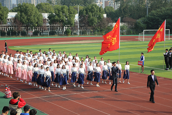 随后,裁判员代表、运动员代表先后宣誓,校长龚方红宣布2018年运动会开幕。