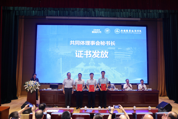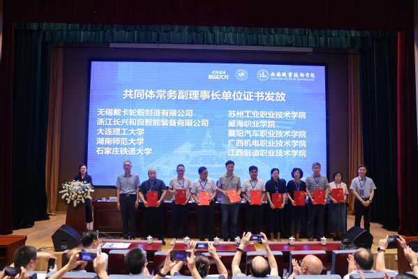 随后,机械工业教育发展中心主任陈晓明为共同体三家理事长单位授牌、颁发理事长证书;理事长为三位秘书长及十家常务副理事单位颁发了证书。