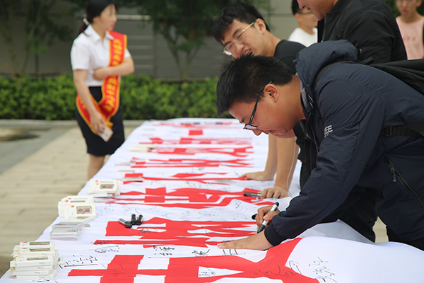 活动现场,我校大学生控烟志愿者带来的快闪舞蹈中,反复出现的“戒烟三手势”引起众人关注。观众们拿出手机扫码查看“我为控烟发声”动画,了解控烟戒烟知识。大学生们还纷纷在“拒绝第一支烟”横幅上签名,承诺控烟从自己做起。