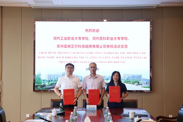 会上,周桂瑾代表学校对各位领导的来访表示热烈欢迎,并重点介绍了学校的办学概况、发展思路及主要举措。他提出,希望越南河内工业职业大专学校、河内百科职业大专学校、苏州富纳艾尔科技越南有限公司未来能够与我校在智能制造领域国际化高水平技能人才联合培养、高端技术技能人才培训等方面进一步深化合作,互利共赢,积极探索中越校企合作发展新思路。