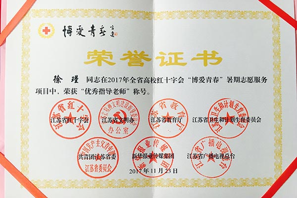 徐瑾老师获奖证书
