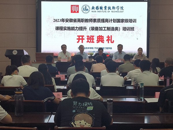 71日上午,2023年安徽省高职教师素质提高计划国家级培训装备加工制造类专业课程实施能力提升培训班在我校国际交流中心第二报告厅开班。我校副校长吴慧媛、安徽省高等学校师资培训中心常务副主任袁德水、安徽省高等学校师资培训中心秘书田滋军、我校继续教育与培训部主任饶成明、汽车与交通工程学院党总支书记张美娟,以及培训班全体学员出席开班仪式。