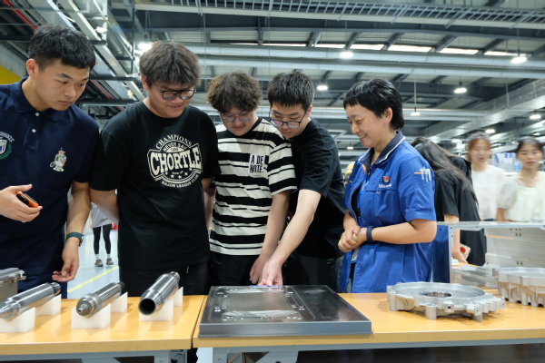 威孚集团党群工作部部长杨公海、汽零党总支书记徐娇对我校师生一行的到来表示热烈欢迎。在徐娇的带领和讲解下,大家参观了无锡威孚高科智能制造示范车间。车间里穿梭往来的智能化运输设施、一组组从事精密加工的机器人巧手、产品质量自动化检测设备等让师生们目不暇接、连连惊叹,通过零距离接触,师生们对以创新为主导,具有高科技、高效能、高质量特征的新质生产力有了更直观的认识和更深入的理解。刘思月同学说:“通过本次参观,我见识到了自动化技术的应用,一览工厂有秩序的运行操作流程,亲身感受到了每一个工件的精美,这让我开阔了自己的眼界,学到了更多的东西。” 严如玉同学说:“通过参观无锡威孚高科,我深刻感受到了新质生产力的先进性和创新性。这次活动让我认识到,作为新时代的青年,我们应该积极拥抱科技创新,努力提升自己的专业素养和实践能力。”