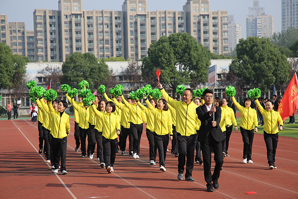 在庄严的升国旗仪式后,华坚副校长致开幕词,指出过去的一年里,我校体育教学水平、竞技水平、体育教学改革、群众性体育活动都取得了明显进步,2017年我校《大学生体质与健康标准》测试中学生达标率为95.34%;唐益老师取得第十三届全运会群众组羽毛球项目冠军,学校男篮在省第十九届运动会取得预赛第一、决赛第四的好成绩,2017年江苏省大学生跆拳道锦标赛中,我校男子、女子组共取得四个第二名;省第三届高职高专体育教师教学技能比赛中,我校获得一等奖1项、二等奖2项。