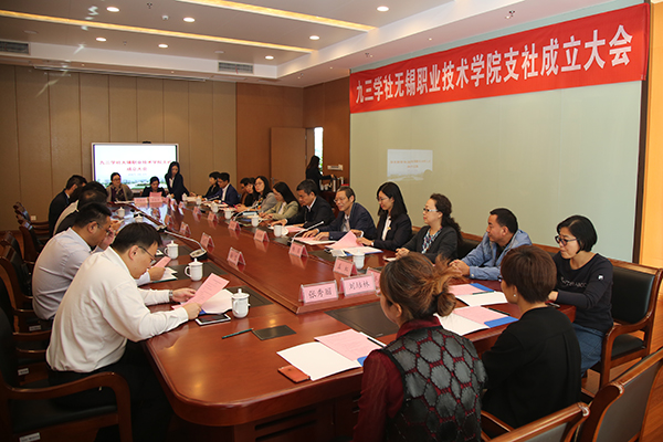 成立大会由九三学社无锡市委副主委任克奇主持。九三学社无锡市委组织处处长邵康奕宣读了《关于同意成立九三学社星空app官网支社委员会及班子成员组成的批复》;九三学社教育一支社主委徐雷致贺词;新当选的九三学社无锡职院支社主委杨丽同志发表了讲话;我校民革支部主委盖虹代表兄弟党派支部致贺词。