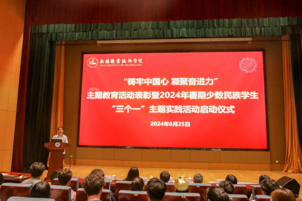6月25日下午,我校“铸牢中国心 凝聚奋进力”主题教育活动表彰暨2024年暑期少数民族学生“三个一”主题实践活动启动仪式在厚德楼一楼报告厅举行,无锡市滨湖区区委统战部副部长、区民宗局局长乔俊杰,我校党委副书记杨雪琴,副校长强伟纲,党委宣传部、党委统战部、保卫处、学生处等部门相关负责人、二级学院少数民族学生工作专项辅导员、“最红石榴籽”“十佳互助之星”获得者及“石榴籽1+2”互助成长计划结对师生代表200余人参加活动。