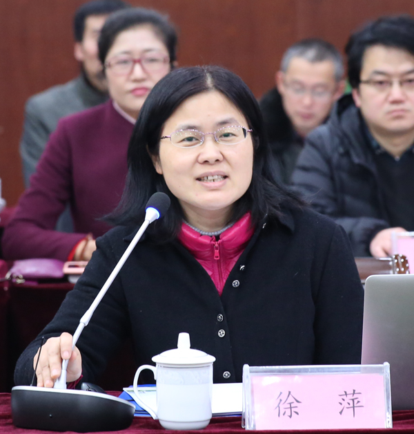 江苏省教育厅高教处副处长徐萍主持汇报会