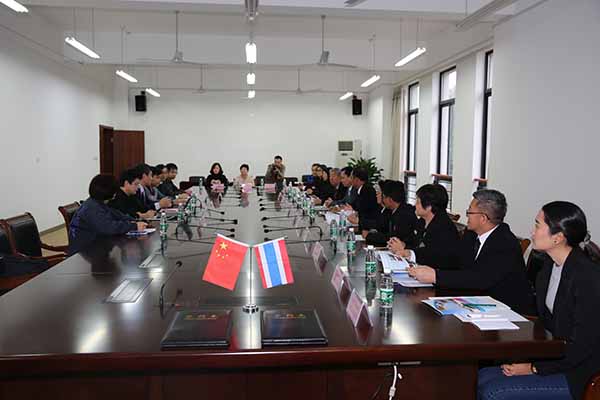 11月21日上午,泰国泰中华文教育基金会会长魏青先生、泰国罗勇府教育厅厅长THAWATCHAI OUI-PANICH先生率泰国7所学校校长、校董一行16人来我校访问交流。