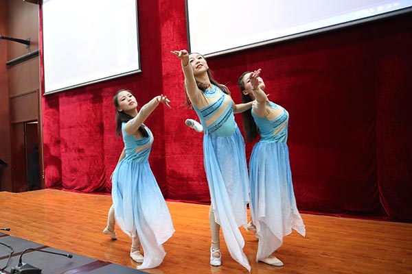 国际教育学院熊英院长着重介绍了我校中外合作交流情况及留学生招收相关政策。我校师生为大家表演了精心准备的太极、舞蹈、民乐演奏等节目,印尼、老挝等外国留学生也以独具风情的民族舞蹈和吉他伴唱等节目参与到这场文化交流活动中。