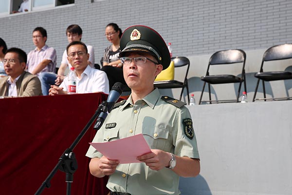 华坚副校长在军训总结中回顾了2016级新生军训情况,代表学校向承训部队全体教官表示衷心的感谢和崇高的敬意,号召同学们学习他们身上所展现的坚忍不拔、吃苦奉献的军人风范,并将军训期间的收获和成果内化于心,以更高标准严格要求自己,努力学习、勤奋实践,成长为高素质技术技能型人才。