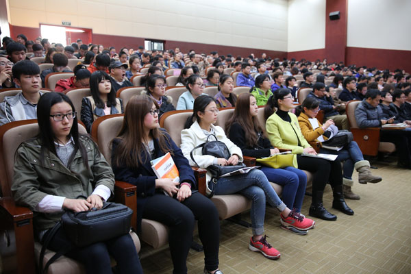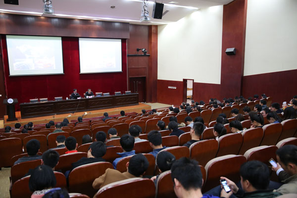 报告会由学校党委副书记谈向群主持。颜开围绕今年全国两会情况,为大家解读了政府工作报告及审议情况、人大工作报告、“十三五”规划纲要和慈善法草案等内容,提纲挈领地介绍了过去一年我国经济、社会发展所取得的成绩,以及今年政府重点工作。报告中,颜开还就两会热议的“工匠精神”等发表了自己的看法,倡议同学们在校学习期间培养坚定、踏实、精益求精的品质。